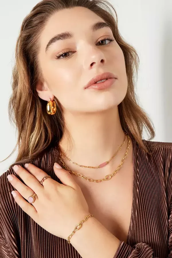 Hoe leuk is deze gouden schakelarmband met subtiel printje! In het midden van de armband is een subtiel rondje verwerkt. De armband is voor elke gelegenheid geschikt en kan zowel enkel als met meerdere armbandjes gedragen worden! De armband is gemaakt van Stainless steel! Het armbandje kan vanaf 16 cm tot en met 19 cm gedragen worden.