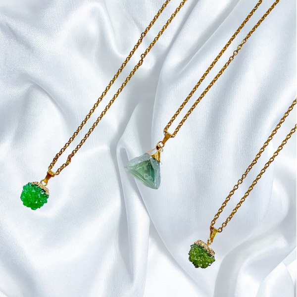 Let op! Door de ruwe edelsteen in de hanger, is geen enkele ketting hetzelfde. Dat maakt elke ketting uniek en bestemd voor jou alleen. Elke steen kan dus licht van kleur en vorm verschillen. In de specificaties hieronder kun je zien tussen welke maten elke hanger zit.