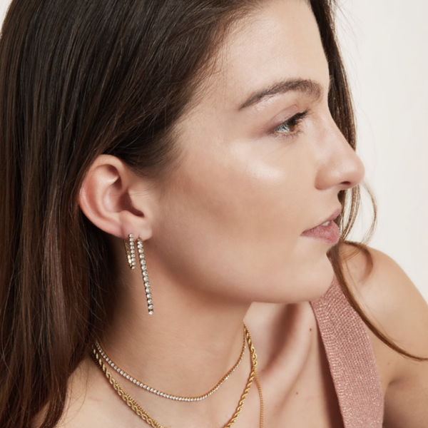 Leuke langere oorbellen met zirkoon steentjes.